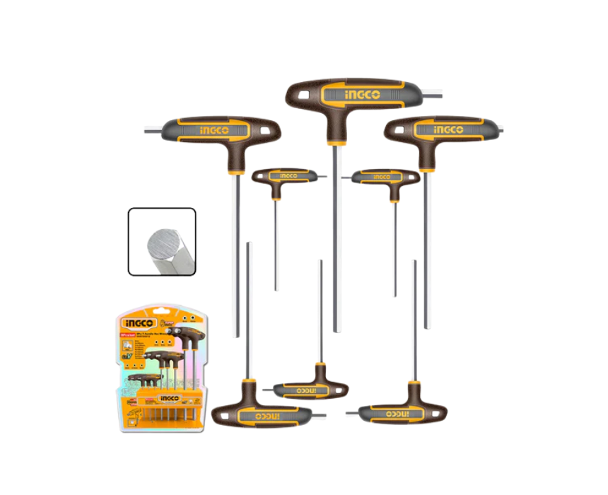 The Ingco 8PCS T-Handle Hex Wrench Set 8081 provides durable and ergonomic tools for tightening and loosening hex screws with ease. Its T-handle design ensures comfortable grip and better torque, making it ideal for DIY projects, furniture assembly, and professional applications. Compact and reliable, it’s a versatile addition to any toolkit.