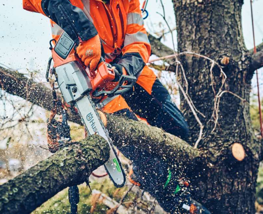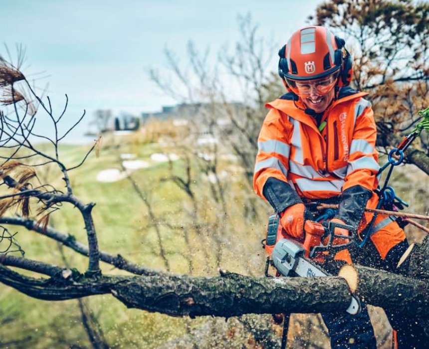 The T542i XP Arborist Battery Chainsaw features a 40 V Li-Ion battery, 40 cm blade with 0.325″ mini pitch, 40 cc equivalent power, and a lightweight 3.3 kg design with clutch for safe and precise cutting. Its ergonomic construction allows arborists to handle branches efficiently, and users can maintain control and comfort by keeping a firm grip and proper stance during operation.