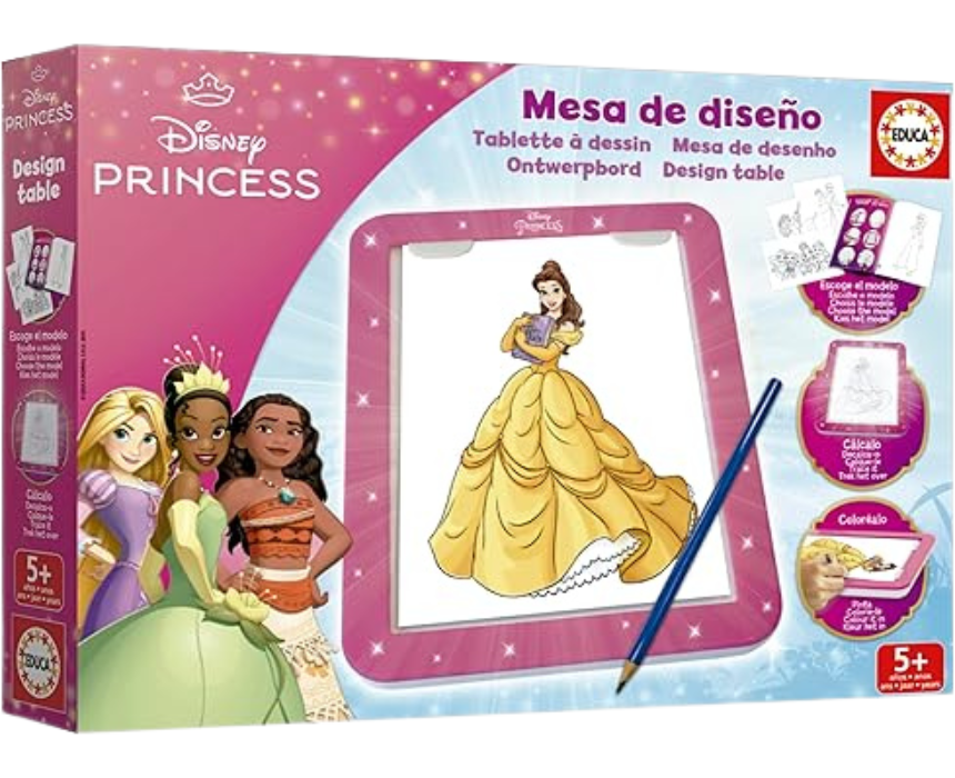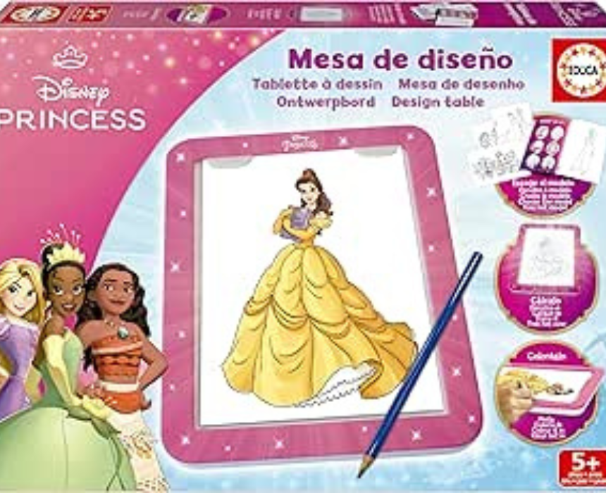 Educa table design princesses Disney set offers a fun and creative activity where children can decorate and personalize surfaces with charming princess themed elements. Designed to inspire imagination and artistic expression, it encourages hands on play and attention to detail. Ideal for creative sessions, it adds a magical touch to playtime or room decor.
