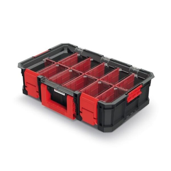 The Tager Case Organizers 40 by Kistenberg (KTC40306S) include three stackable TAGER series organizers , 390 x 284 x 60 mm each, with 12 adjustable separators for customizable storage. Designed with an ergonomic handle, durable polymer body, and soft interior material, they’re perfect for carrying, wall-mounting, or stacking in workshops or garages. Ideal for organizing tools, craft supplies, or hardware with efficiency and ease.
