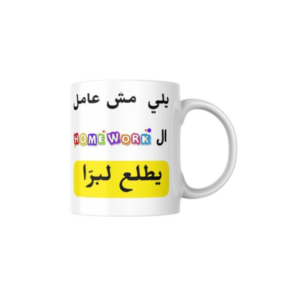 The Teacher Mug features a playful animation of a teacher in front of a board with the Arabic phrase “بعد في دقيقتين حطو ورقة و قلم”. Made from durable ceramic, this mug is perfect for educators to enjoy their coffee or tea with a touch of humor. Ideal for daily use at school or home, it makes a fun and practical gift for teachers.