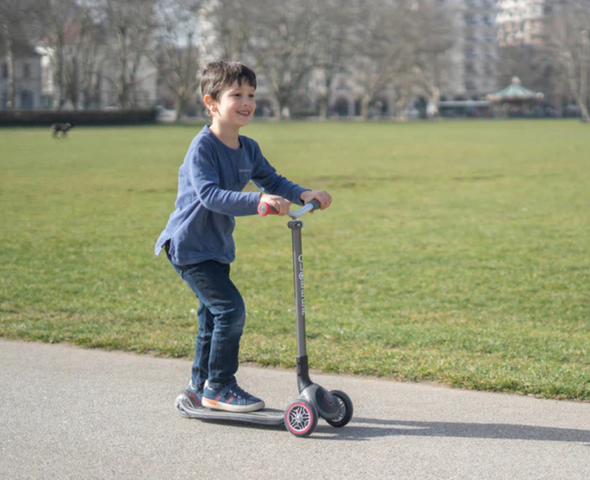 The MASTER LIGHTS 3-wheel scooter for teens features an extra-wide, anti-slip XL scooter deck lined with soft EVA foam for maximum comfort during rides. Its 5-height adjustable T-bar (74–94 cm) allows customization for a perfect fit, while the patented folding system makes it easy to fold, carry, store, or use in trolley mode after playtime. Designed for safety, comfort, and style, it’s ideal for hours of fun scooting on streets or sidewalks.
