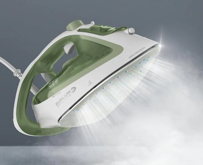 The Tefal EasyGliss Eco Steam Iron 2800W with Durilium Airglide soleplate and 240g steam boost offers fast, efficient ironing while saving energy. Its advanced soleplate glides smoothly over all fabrics, delivering wrinkle free results with minimal effort. Ergonomically designed and eco friendly, it combines high performance with energy efficiency and a sleek, modern look for any laundry space.