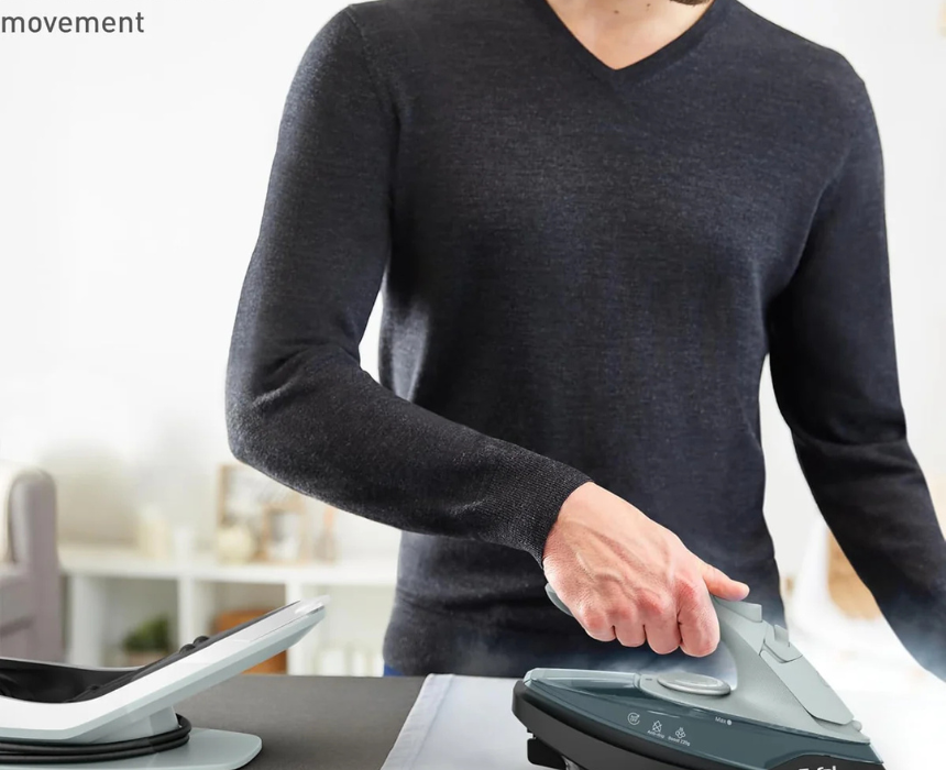 The Tefal Freemove Power FV6672G0 Cordless Steam Iron delivers powerful 2600W performance for fast heat-up and efficient wrinkle removal with complete freedom of movement. Sleek and ergonomic, it can be styled as a modern laundry essential that pairs perfectly with organized ironing spaces and contemporary home setups.