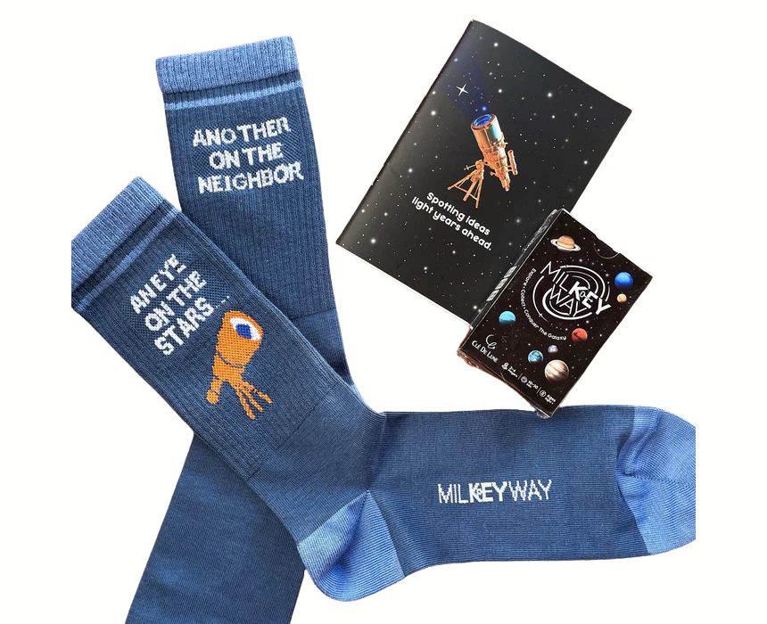 The Telescope themed set includes a game, a pair of men’s size socks, and a notebook, creating a balanced mix of comfort, creativity, and entertainment. The socks are ideal for pairing with casual or lounge outfits, while the notebook supports writing, planning, or daily organization. A practical set designed for everyday use, relaxation, and thoughtful gifting.