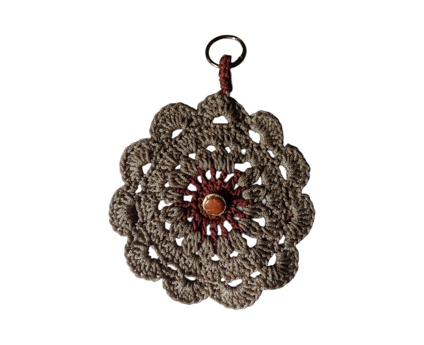 Experience earthy elegance with our terracotta and beige sunglasses holder. Hand-knitted from superior quality yarn, this holder features a warm, neutral palette that complements any outfit. The soft interior protects your sunglasses from impact and surface damage, while the high-quality accessories provide a refined finish. Perfectly sized for standard frames, this artisan-made case is a practical yet fashionable way to organize your accessories with a touch of nature.