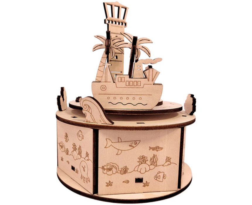 The Age Of Navigation Rotational Music Box 3D Mechanical Wooden Puzzle is a precision laser cut DIY model that assembles into a rotating historical navigation themed music box with detailed gears and smooth melodic motion, crafted from eco friendly wood and built without glue. Suitable for teens and adults, it provides a satisfying hands on build and styles beautifully as a decorative accent on desks, shelves, or nautical themed décor.