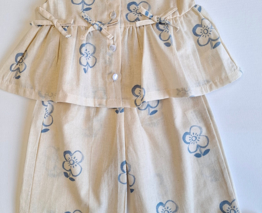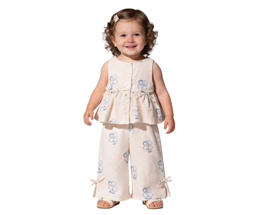This blue muslin set offers a soft and breathable fit, perfect for comfortable everyday wear or casual outings. Each piece can be styled together for a coordinated look or mixed with other wardrobe essentials for versatile outfits. A practical and charming addition, it brings effortless style and comfort to any young child’s wardrobe