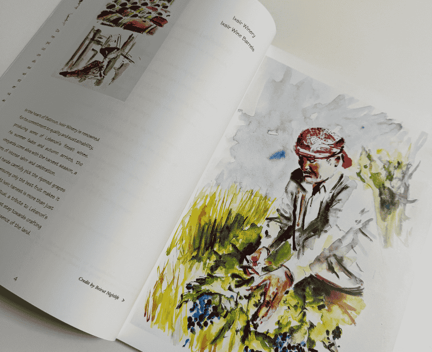 The Scent of Lebanon book showcases watercolor paintings capturing the authentic cultural depth of Lebanon and its people. Presented in a softcover format, this 22 × 28 cm book celebrates Lebanese heritage through vivid artistic interpretations.