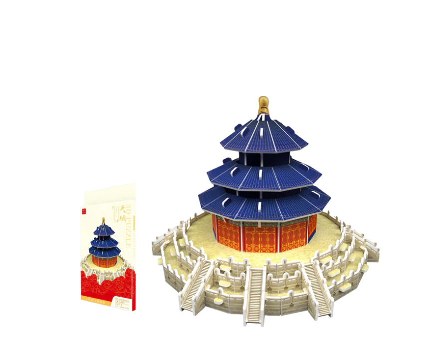 The Temple of Heaven 3D Puzzle Small is a compact architectural model that recreates the iconic Beijing temple with intricate details in a fun and educational build. Once assembled, it can be styled as a decorative piece on desks, shelves, or display areas, adding a cultural and historic touch to any space. Its small size makes it perfect for gifting, collecting, or easy display.