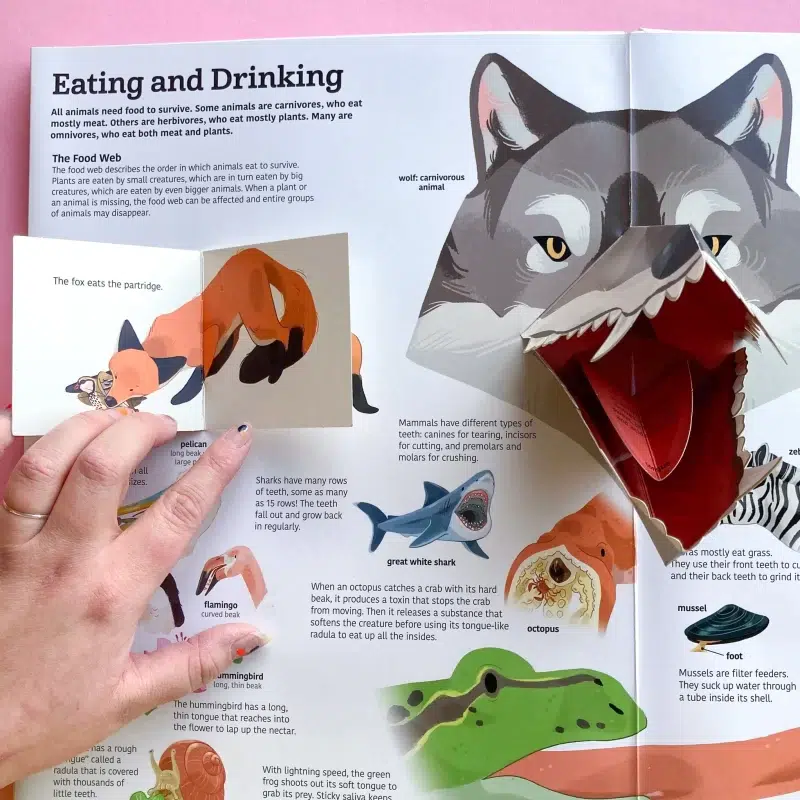Ultimate Spotlight: Animals invites children to explore creatures of land, sea, and air with detailed illustrations, flaps, pop-ups, pull-tabs, and wheels that reveal how animals grow, move, see, hear, adapt, and survive. With supersized spreads and over 50 interactive elements, it offers an engaging and educational journey into the animal world. Perfect for curious learners, recommended for ages 3 and up.