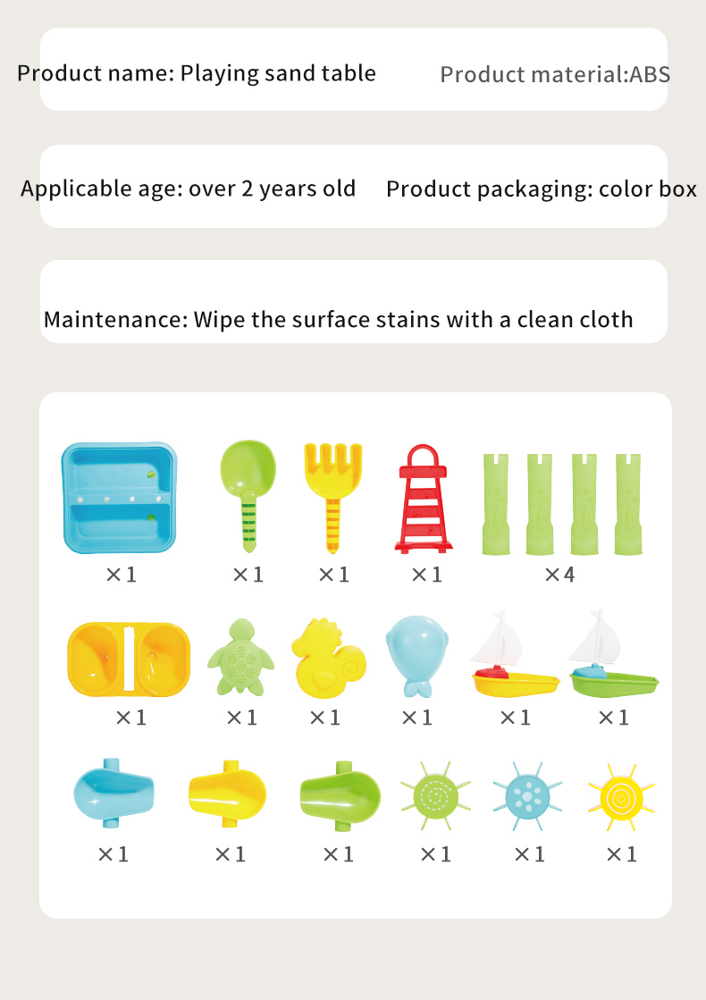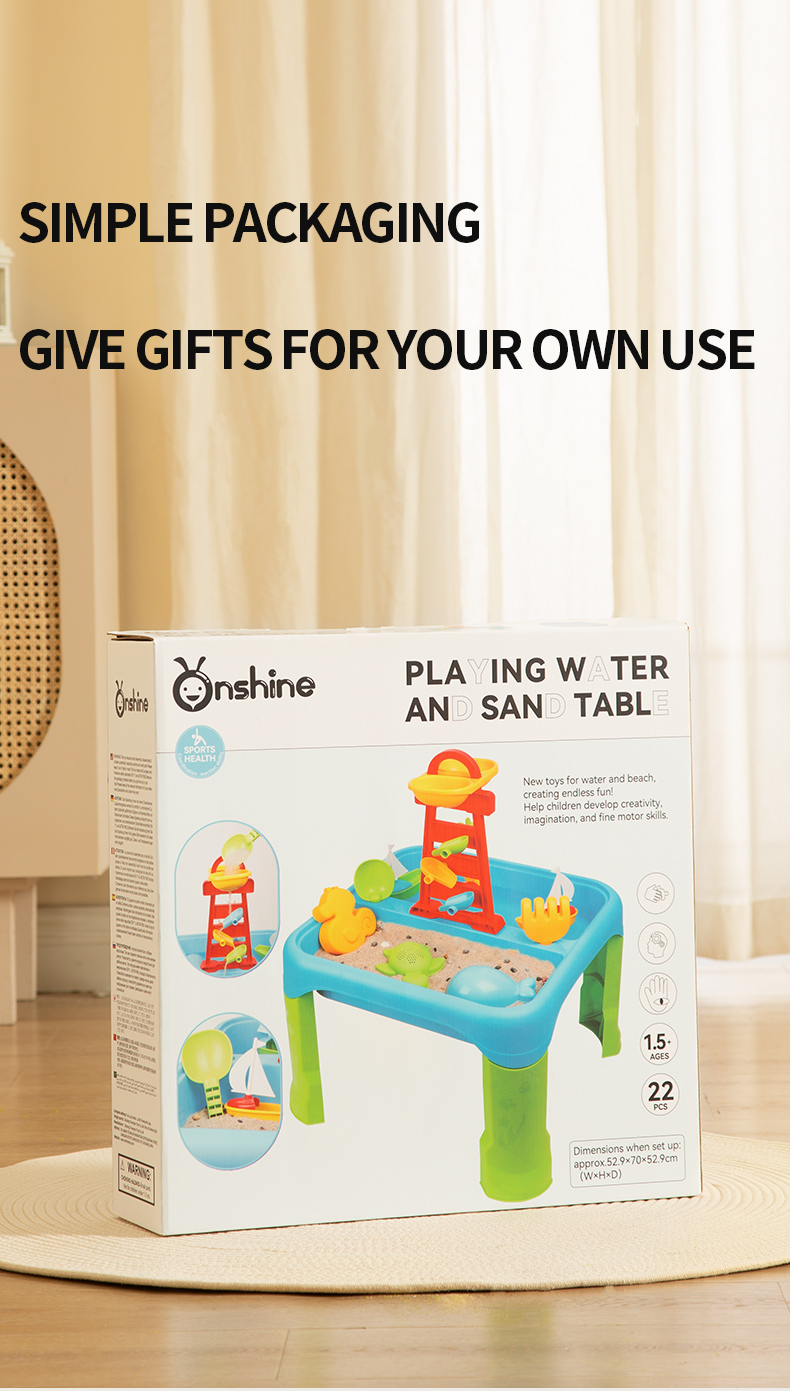 The Ultimate Paddling Water-Sand Table lets children enjoy water and sand play at the same time, inspiring creativity and sensory development. Crafted from high-quality, odor-free ABS material, it features detachable legs for convenient storage and transport. Complete with fun accessories like shovels, rakes, molds, water wheels, and sailboats, this 70 cm x 52.9 cm x 52.9 cm table is perfect for kids aged 2 and up for both indoor and outdoor play.