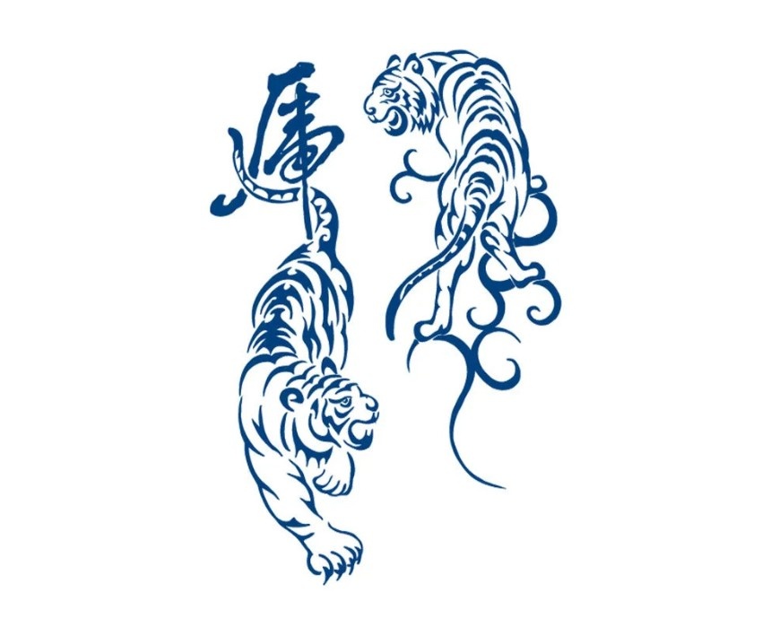 The 2 Tigers 虎 (hǔ) Kanji jagua tattoo in 11 x 18 cm size combines powerful animal imagery with traditional symbolism for a bold temporary body art look. It is easy to apply and ideal for expressing strength and style at festivals, events, or everyday fashion. Wear it on the arm, chest, or back and pair with minimal outfits to highlight its detailed tiger and kanji design.