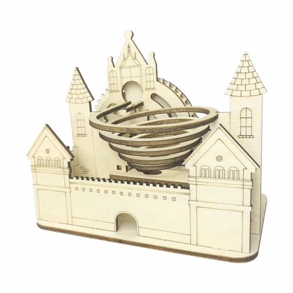 Timber Rollers Marble Run Set is a 3D mechanical wooden puzzle designed for hands-on building, featuring precision-cut wooden parts that create a smooth, rolling marble track once assembled. The finished model can be styled as an interactive desk piece or decorative shelf display, blending natural wood aesthetics with moving mechanical design.