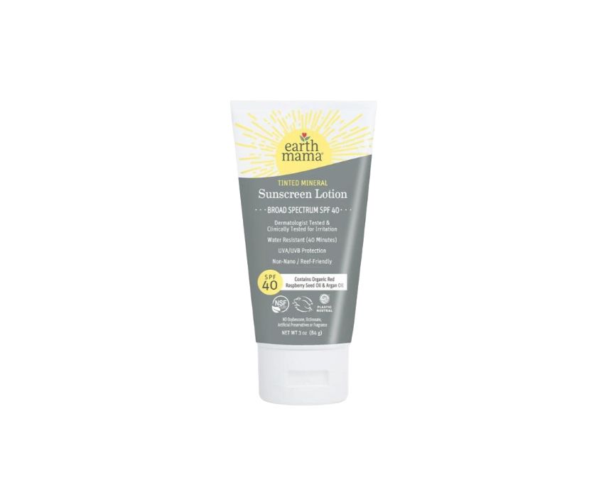Earth Mama Organics Tinted Mineral Sunscreen Lotion SPF 40 offers sheer tinted coverage with non nano zinc for safe sun protection. Ideal for daily wear, it blends effortlessly into all skin tones, giving a natural glow while shielding from harmful rays. Perfect for face and neck, worn alone or under makeup.