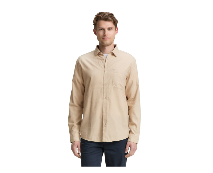 The Tom Tailor Long Sleeved Beige Shirt with chest pocket offers a classic and versatile style, crafted for comfort and everyday wear. Its neutral beige color and practical chest pocket make it ideal for casual or smart-casual outfits. Pair it with jeans, chinos, or layered under a jacket for a polished and effortless look.