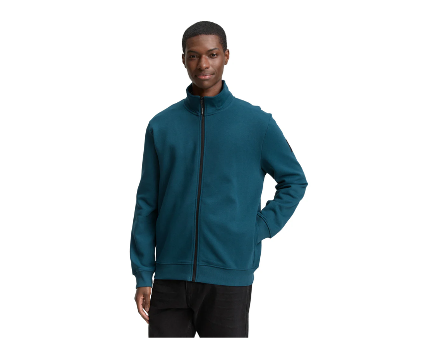 This Tom Tailor long sleeved deep green jacket features a full zip closure, a sleek design, and a comfortable fit for everyday wear. Its rich deep green color makes it perfect for layering over casual or smart-casual outfits, ideal for cooler days and outdoor activities.