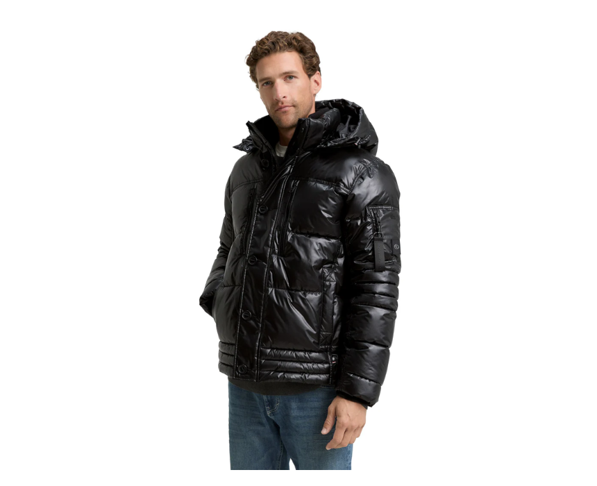 Tom Tailor Puffer Black Jacket with Detachable Hood