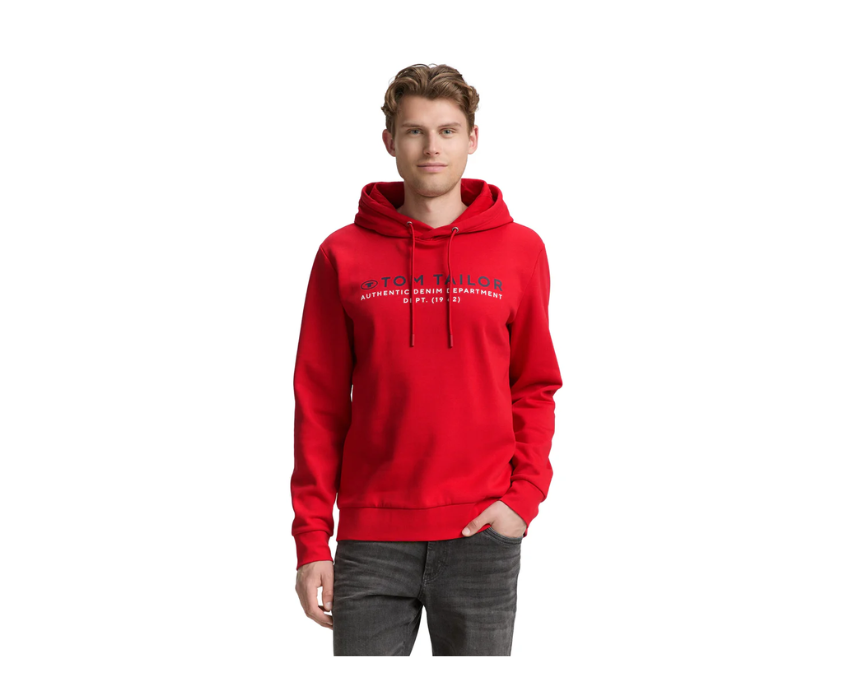 The Tom Tailor Red Hoodie with logo print delivers a bold, casual style, crafted from soft fabric for all-day comfort. Its relaxed fit and vibrant red color make it ideal for casual outings or layering over t-shirts. Pair it with jeans, joggers, or casual pants for a stylish, streetwear-inspired look.