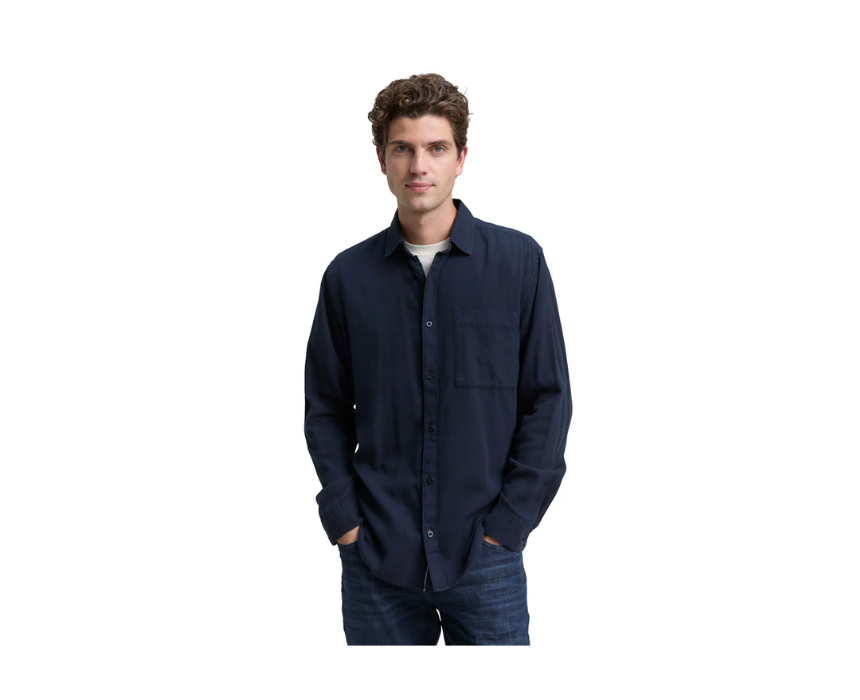 This Tom Tailor regular fit cotton navy shirt features a soft cotton fabric, classic collar, and button-front closure for a comfortable and timeless look. The versatile navy color pairs effortlessly with jeans, chinos, or trousers, making it ideal for casual, office, or smart-casual occasions.