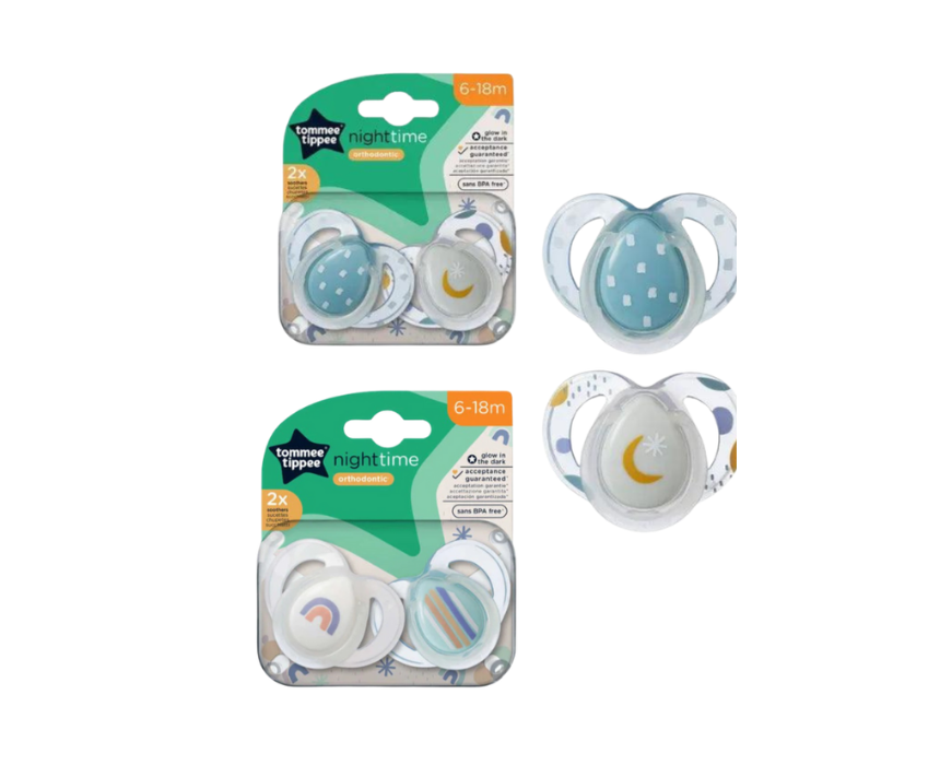 These night time soothers are designed for babies 6-18 months to calm and comfort, helping transform cries into peaceful sleep. Featuring glow in the dark handles for easy nighttime use, a symmetrical orthodontic silicone teat, and a curved shield for airflow, they provide safe, durable, and hygienic comfort. Easy to clean and highly recommended by parents, they support restful nights for both babies and caregivers.