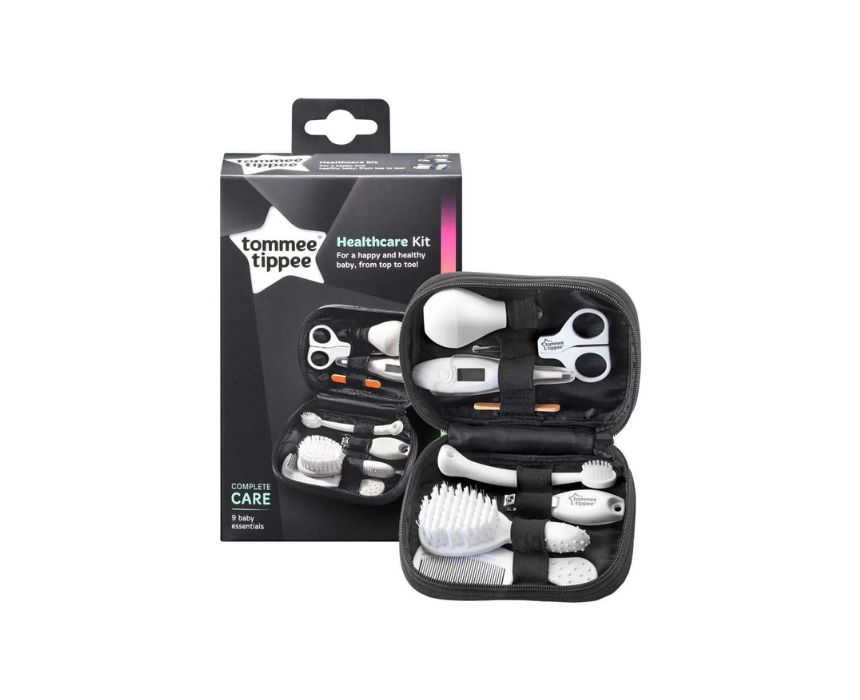 The Tommee Tippee Health Care Set is a complete baby grooming and hygiene kit, perfect for home or travel. It includes a digital oral thermometer for accurate temperature checks, a gentle brush and comb for delicate hair, scissors, nail clippers, emery boards for safe nail care, a nasal aspirator to clear stuffy noses, and a baby toothbrush to start oral hygiene early. Compact and neatly packed, it’s ideal for organizing in a diaper bag or nursery drawer.