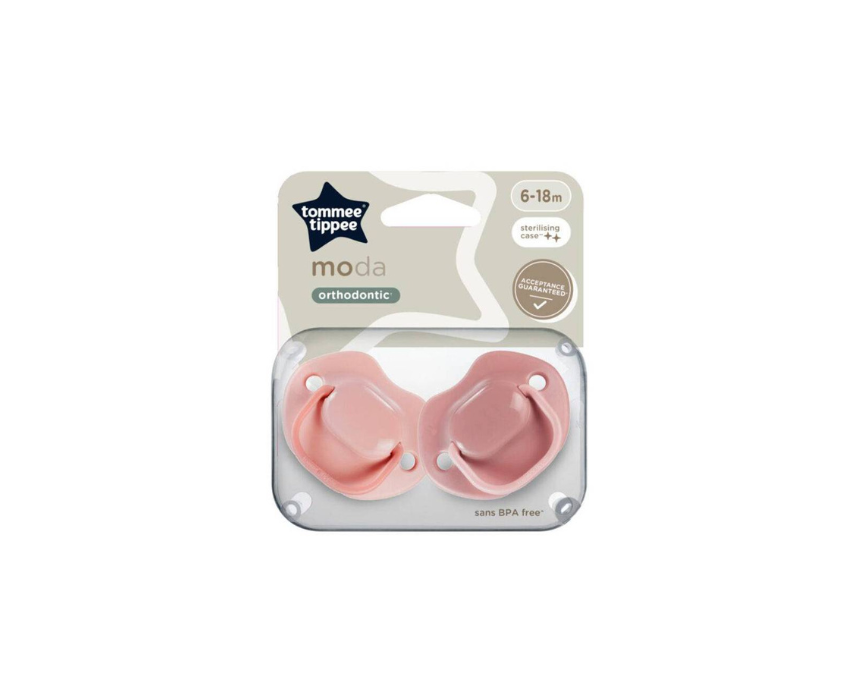 Tommee Tippee Moda Soothers for girls provide stylish, orthodontic-approved comfort for babies 6-18 months. They support healthy oral development while keeping little ones calm and soothed.