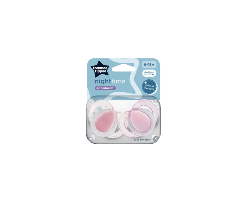 Tommee Tippee Soother Night Time Pink 6-18M 2 Pieces