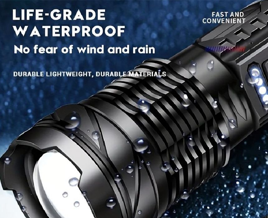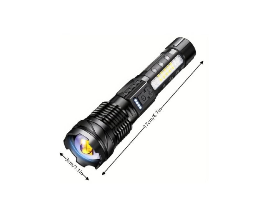 The Torch A76 is a powerful 2000-lumen flashlight featuring a 200-meter beam range and versatile zoom focus for precise lighting. It offers 8 modes including high, low, strobe, and side lights in white, red, and blue. With a 2600mAh rechargeable battery and Type-C USB charging, its rugged aluminum alloy and ABS build ensures durability for outdoor adventures and professional use. Compact and lightweight, it’s easy to carry or attach for hands-free lighting.