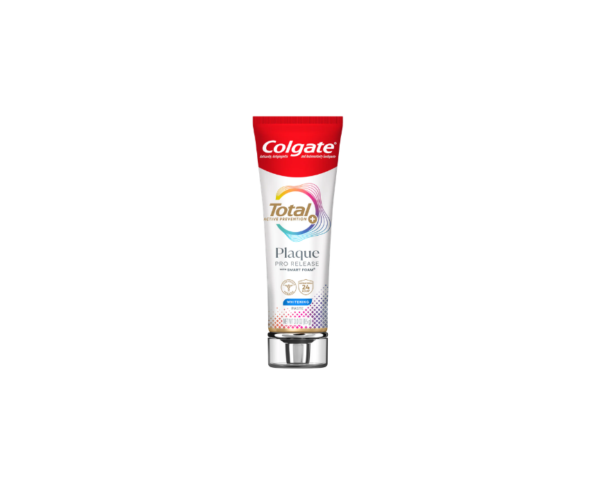Colgate Total Plaque Pro Release Whitening Toothpaste uses Smart Foam Technology to dissolve and lift away plaque, helping reduce gum harming bacteria and improve gum health. This clinically proven formula provides 24 hour antibacterial protection, fights cavities, tartar, sensitivity, bad breath, and removes surface stains for a brighter smile. Brush twice daily to reach along the gumline and maintain long term oral care.