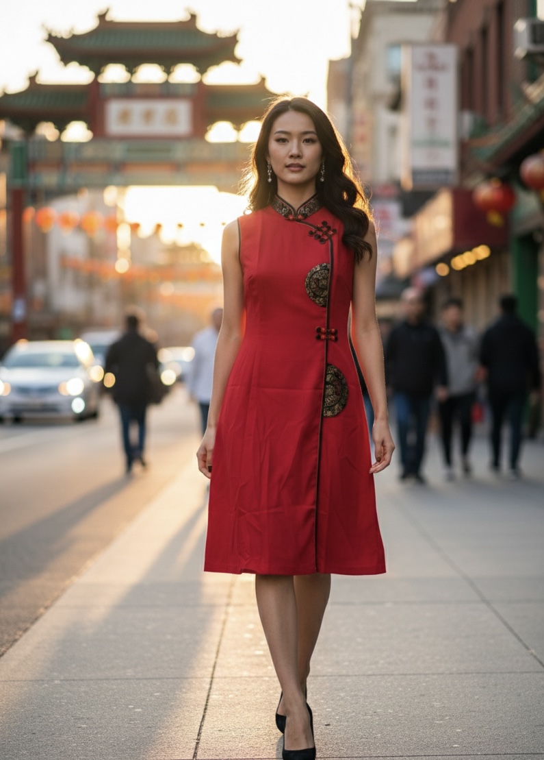 This short-sleeved traditional Chinese cotton dress features a classic mandarin collar and knotted button closures, highlighting intricate cultural patterns along the collar and hem. Available in red, black, beige, and turquoise, it combines comfort with heritage-inspired style, making it ideal for everyday wear or special cultural occasions. A versatile piece that celebrates timeless craftsmanship.