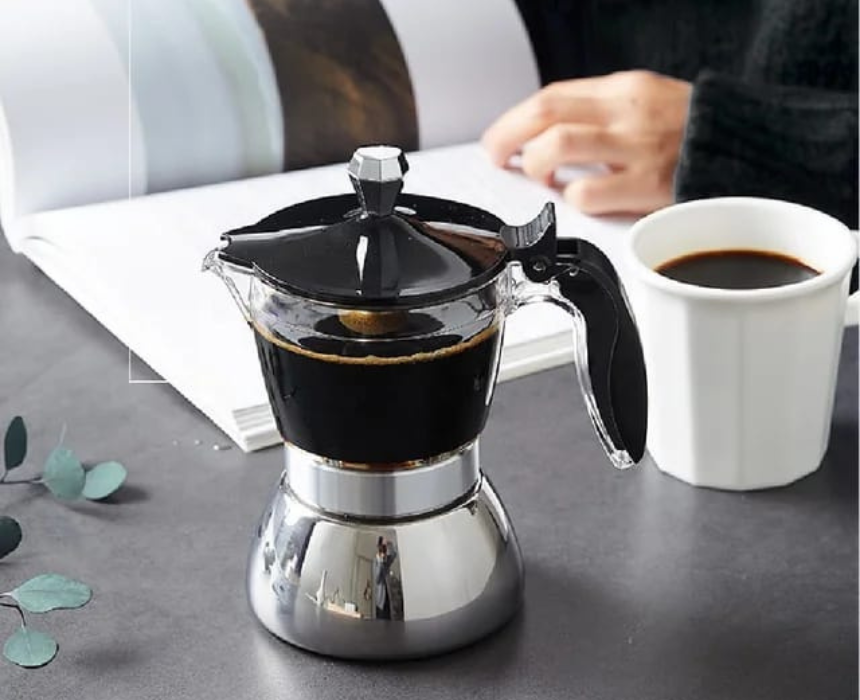 Transparent Moka Pot with 4 Plexi Cups