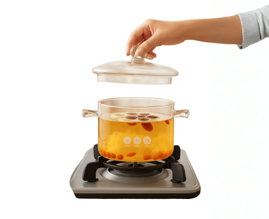1350ml/1500ml heat-resistant glass pot lets you watch your food cook from all angles. Perfect for soups, stews, and more—no need to lift the lid to check on your meals.
