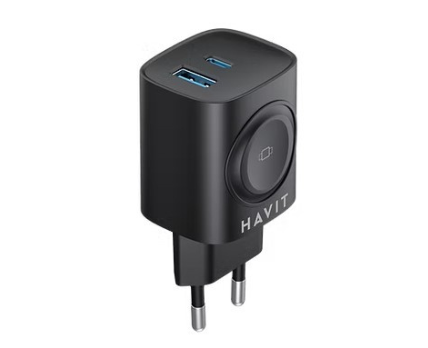 The Travel Adapter 22W With Dual USB C And USB A And Watch Charger Black UC132 provides fast and versatile charging for multiple devices, including smartphones, tablets, and smartwatches. Its dual USB-C and USB-A ports, along with a dedicated watch charger, make it perfect for travel, desk, or home use, offering a compact and stylish solution to keep devices powered and organized without clutter. Ideal for users seeking convenience and efficient charging on the go.