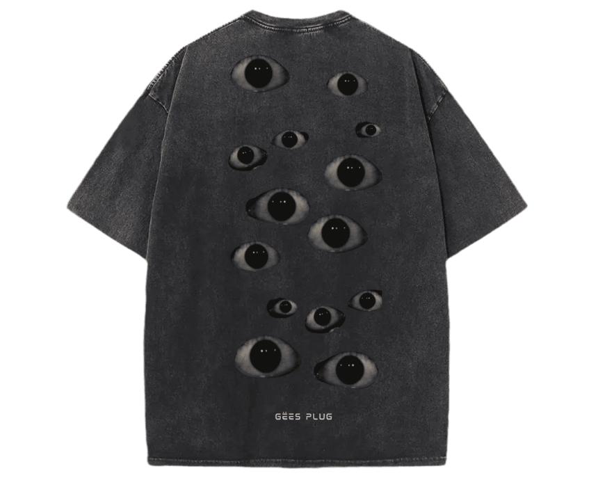 This relaxed fit tee is crafted from 220 GSM 100 percent cotton washed fabric and features a DTG printed eyeball graphic designed by Geesplug. It offers a soft feel and a bold streetwear look.