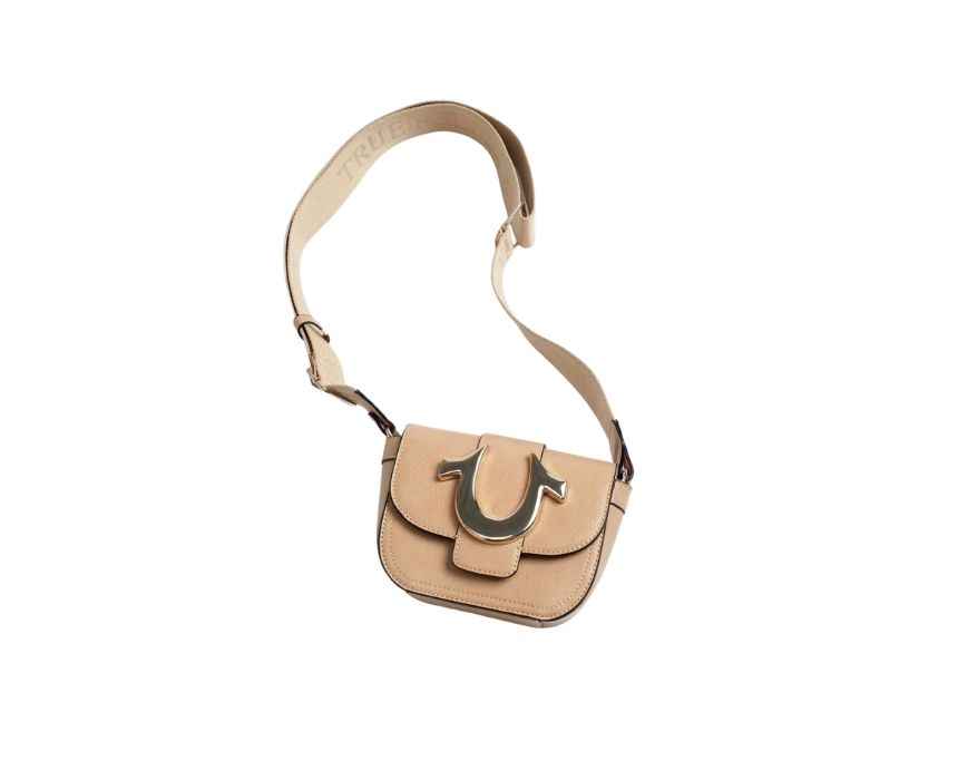 The True Religion Horseshoe Bag Mini in classic beige offers a stylish and functional accessory crafted from high-quality leather. Measuring 5 inches wide, 6 inches high, and 5 inches deep, this compact crossbody features the iconic horseshoe design, perfect for carrying essentials with ease. Its neutral camel color makes it versatile for everyday wear, easily paired with casual or dressy outfits to elevate any look.
