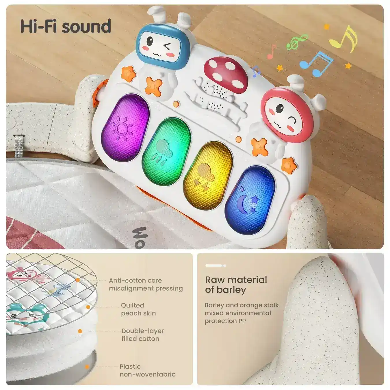 The Customized Lights Interactive Play Baby Gym features bright colors, 6 LED lights, 6 color modes, and 32 lighting effects to engage your baby’s senses and curiosity. With a soft, spacious mat and detachable toys, it offers multiple play modes—lay and play, tummy time, sit and play, and take-along—for growing babies. Made from safe, durable materials with music and volume settings, this sensory gym promotes motor skills, vision, and hearing development. Recommended for newborns and up.