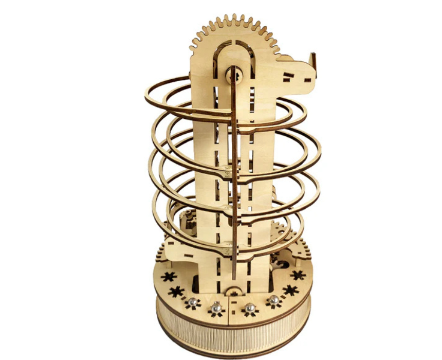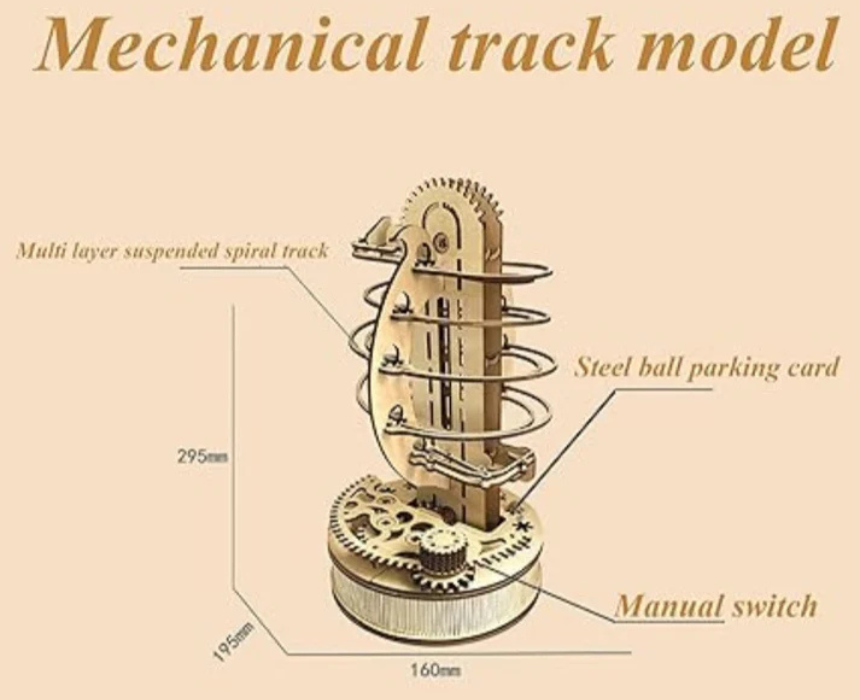 The Turbo Tracks Marble Run Set 3D Mechanical Wooden Puzzle is a precision cut DIY wooden model with fast moving tracks, gears, and mechanical elements that send marbles racing through an exciting system without batteries. Built for hands on assembly, it delivers a rewarding STEM experience and doubles as a dynamic decor piece for desks, shelves, or game rooms. Perfect for puzzle enthusiasts, it blends engineering challenge with display worthy style.