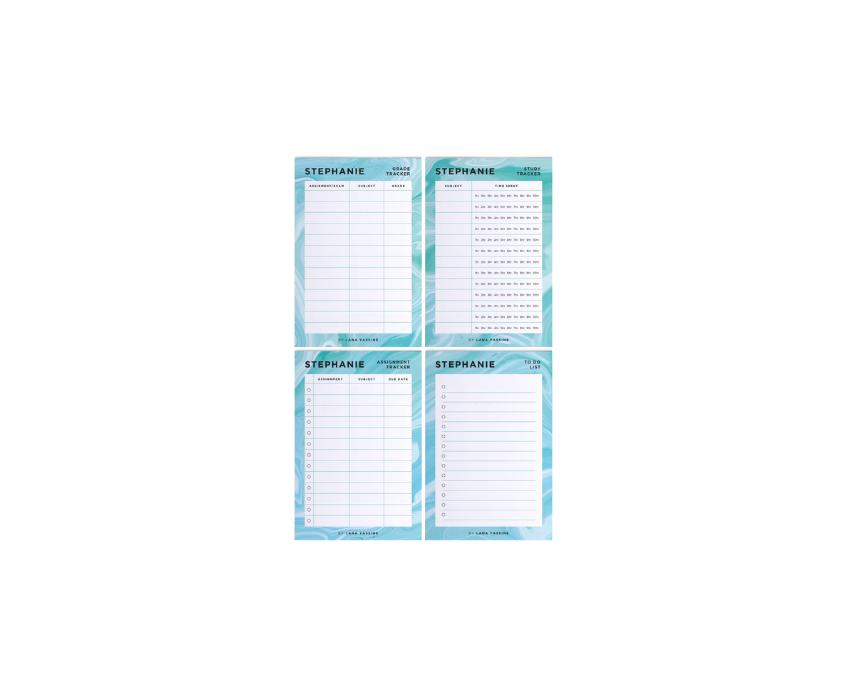 The Turquoise Marble Study Desk Planner is a stylish and practical organizational set featuring four A6 note pads with fifty three tear off sheets each to keep your schedule on track. This vibrant set combines a modern stone aesthetic with high quality paper that can be easily discarded once your daily tasks or habit tracking goals are complete. To style this eye catching planner, place the pads on a light wood desk next to gold office accessories for a luxurious look or use a binder clip to hang your current sheet as a bold focal point on your workstation wall.