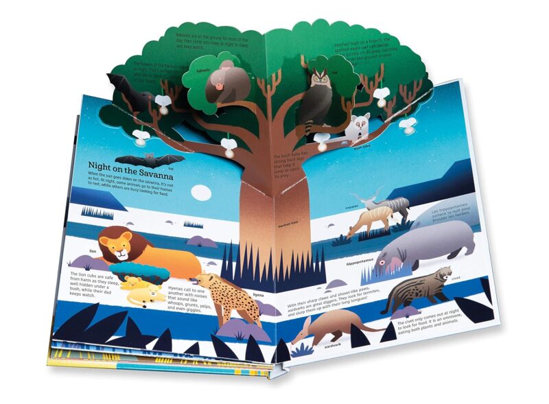 Ultimate Spotlight: Savanna Animals is an interactive and engaging book that brings children up close to the birds, beasts, and bugs of the savanna, featuring flaps, wheels, and pop-up scenes that reveal how these animals live and survive. Filled with detailed illustrations and age-appropriate facts, it offers an exciting and immersive introduction to life on savannas around the world. Perfect for curious young explorers, recommended for ages 3 and up.