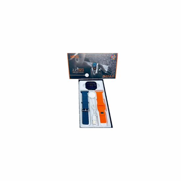 Ultra 3 Smart Black Watch 2.21″ With Black and Orange Bands 2s offers a versatile and stylish smartwatch experience. Featuring a 2.21 inch display and two interchangeable bands in black and orange, it tracks fitness, notifications, and more. Ideal for daily use, workouts, and staying connected in style.