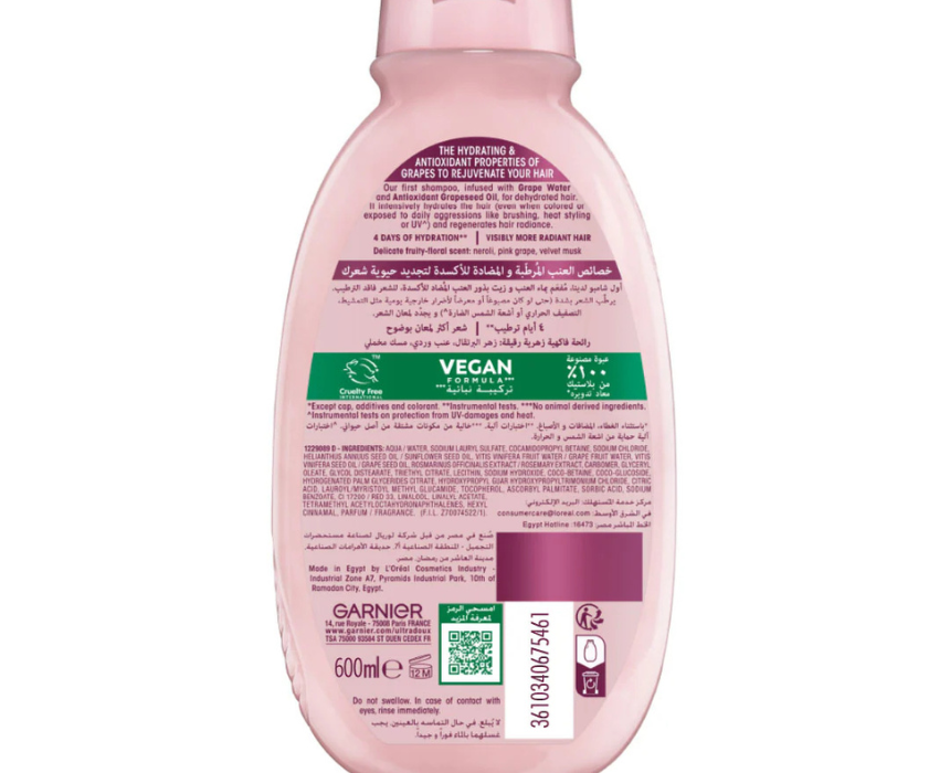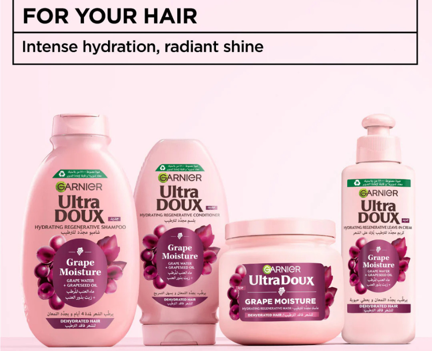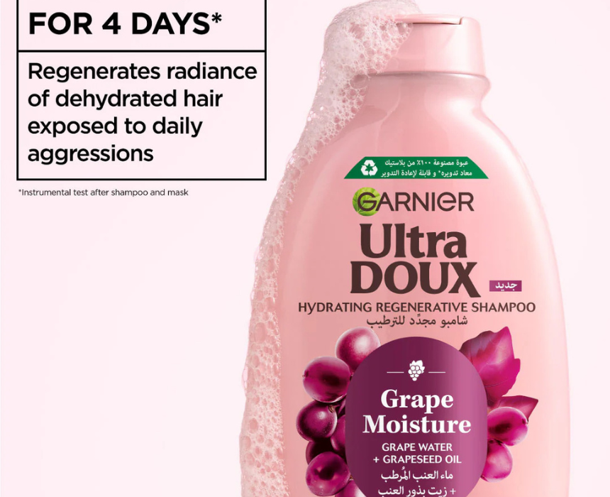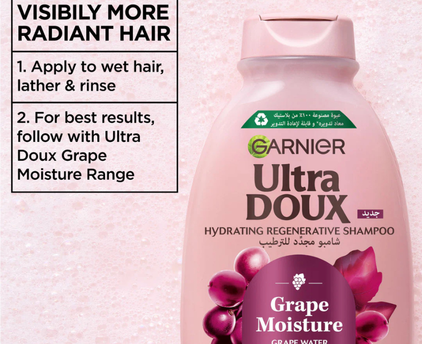 Ultra Doux Grape Moisture Shampoo is specially formulated for dehydrated hair, enriched with grape water and antioxidant grapeseed oil to deeply hydrate and restore natural radiance. Its nourishing formula helps revitalize hair fiber, leaving it soft, shiny, and hydrated for up to 4 days. Apply to wet hair, massage gently into the scalp, and rinse thoroughly for fresh, healthy looking results.