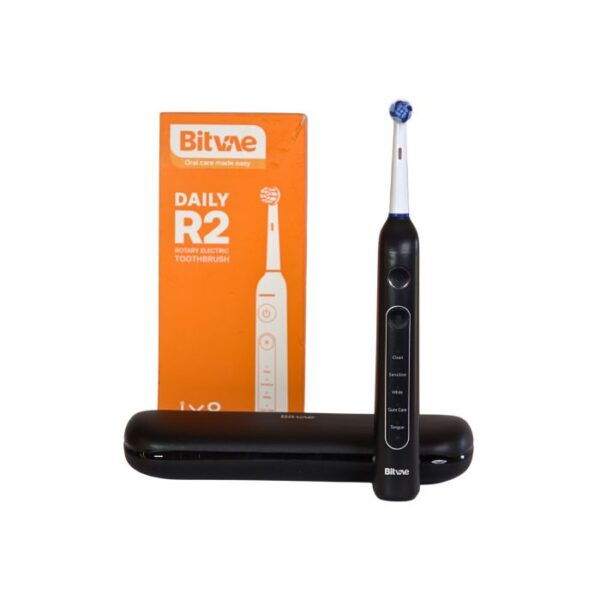 The Bitvae D2 Ultrasonic Toothbrush delivers high frequency cleaning with powerful yet gentle vibrations for healthier teeth and gums. It includes 8 brush heads, a storage box, and offers 30 days of battery life on a single charge. Available in classic black, it is perfect for daily use at home or while traveling. Simply apply toothpaste, turn it on, and brush in circular motions for a thorough clean.