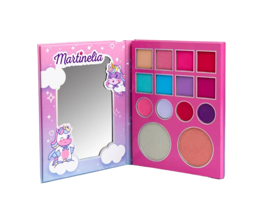 The Martinelia Little Unicorn Squishy Wallet Makeup Palette is a magical all-in-one kit for kids aged 5-10, featuring 8 vibrant eyeshadows, 4 lipsticks, 2 highlighters, and an adorable squishy unicorn. Compact and portable, it’s perfect for creative makeup play, self-expression, and makes a delightful gift for young beauty enthusiasts.