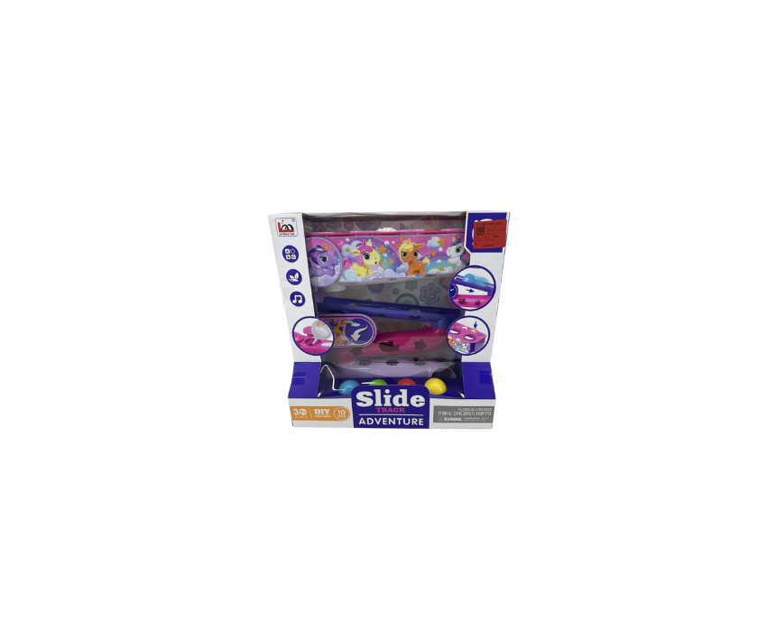 This unicorn-themed ball and track set features a three-layer slide with sound and light effects, providing engaging and interactive play. With 10 DIY pieces, it allows children aged 3 and up to build, play, and develop creativity and coordination, and can be styled with other colorful toys or placed on a play table for a fun, magical display.