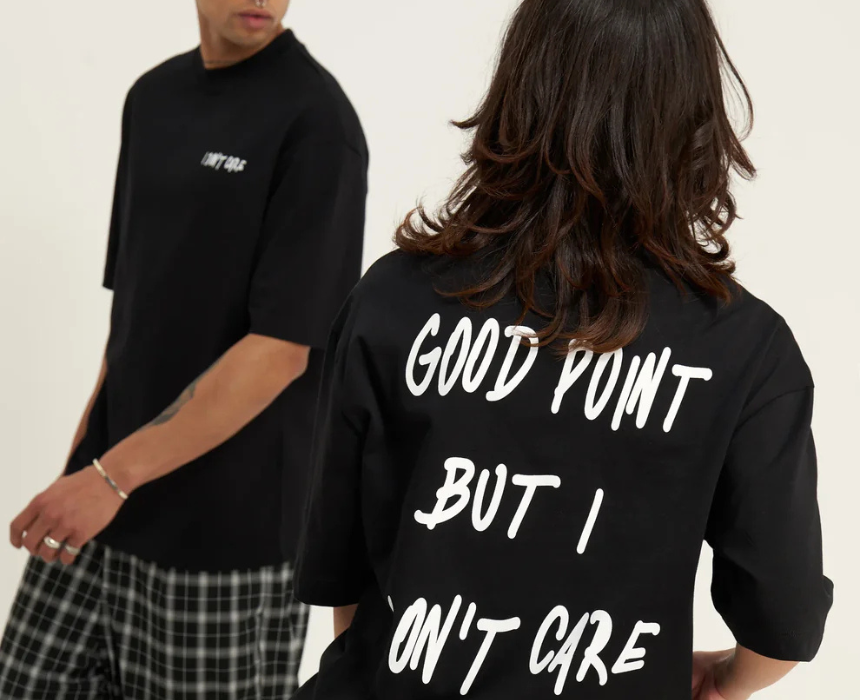 The Don’t Care t shirt by Yourturn is an authentic European import that comes with original tags and premium construction. Made from soft breathable high grade cotton, it features a classic crew neck and a comfortable oversized fit designed for everyday wear, with the model at 180 cm wearing size M. It pairs easily with jeans, cargos, or layered streetwear looks, making it a versatile staple while limited stock lasts.