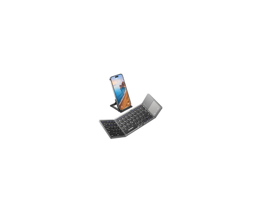 B089T Universal Folding Portable Bluetooth Keyboard with Touchpad is a compact and practical keyboard designed for efficient typing on the go. It features 64 scissor switch keys, a responsive built in touchpad, stable Bluetooth connection up to 10 m, and broad compatibility with Android, iOS, and Windows devices. Ideal for travel, work, and study, it offers long battery life, smooth operation, and a durable folding ABS design.