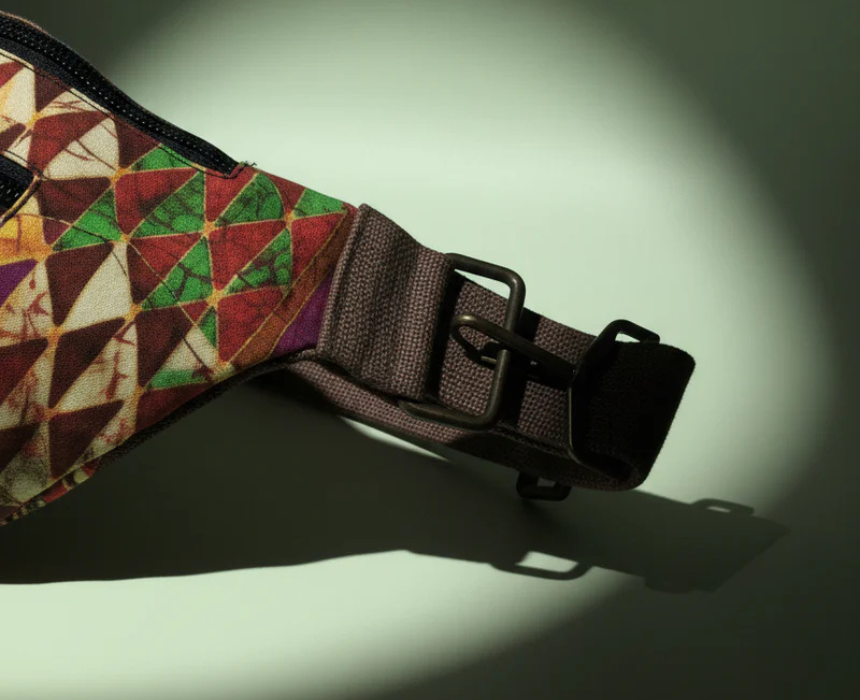 Crafted from repurposed fabric, this upcycled banana bag offers a sustainable, lightweight, and stylish way to carry essentials. Its curved shape sits comfortably across the chest or waist, making it perfect for daily errands or hands-free outings. Pair it with casual wear or athleisure for an effortless eco-friendly look.