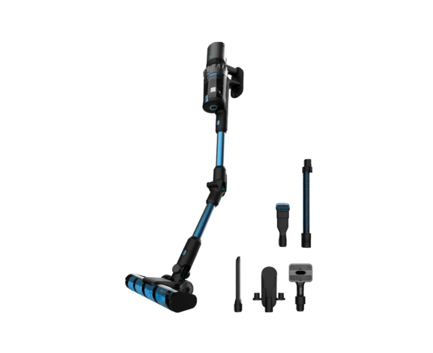 The Conga Rockstar 3500 Storm Flex Animal is a 3-in-1 cordless vacuum with 500 W power, 30 kPa suction, and 150 aW efficiency, offering up to 70 minutes of cleaning autonomy. Its digital motor, parallel cyclonic system, and flexible tube reach every corner, while specialized accessories for furniture, corners, and pets ensure thorough cleaning. ForceSonic technology and automatic power regulation deliver deep, tailored suction on all surfaces, making it ideal for homes with pets.