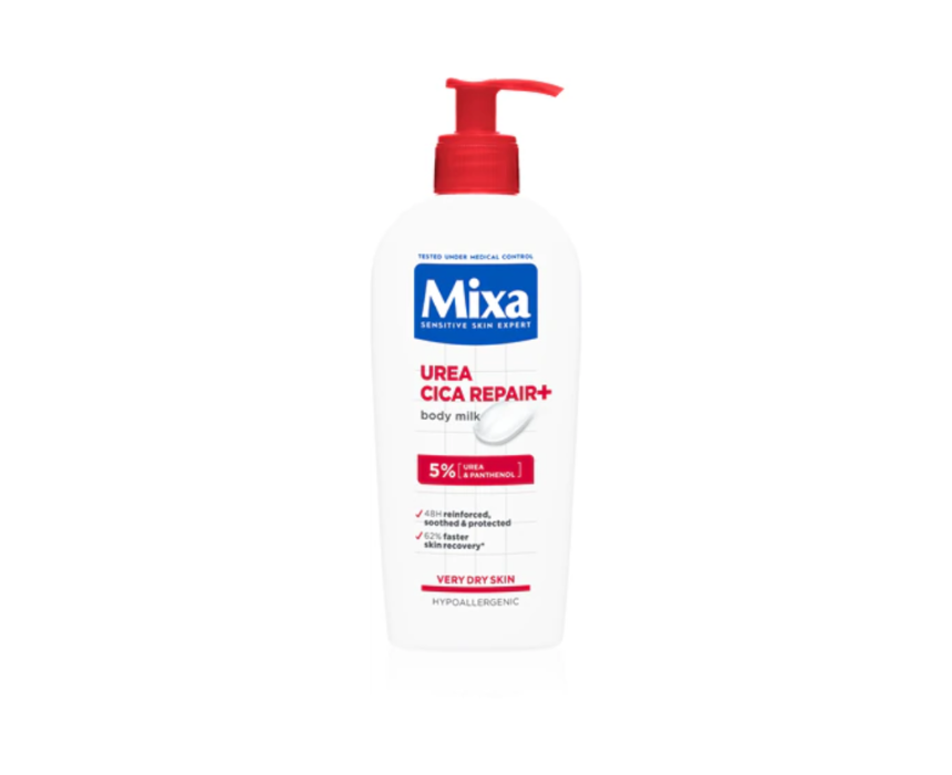 Mixa Urea Cica Repair Lotion is a daily body moisturizer specially formulated for dry to very dry, rough, and sensitive skin. Enriched with urea, glycerin, and panthenol, it restores moisture, smooths uneven texture, and strengthens the skin barrier. Its lightweight, fast‑absorbing texture delivers long‑lasting hydration without greasiness, reducing tightness and discomfort while improving overall skin condition. With continued use, skin feels softer, more supple, and visibly healthier.